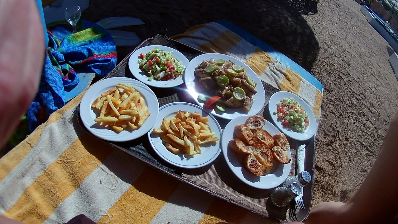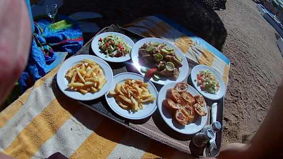 Scampi essen am Strand