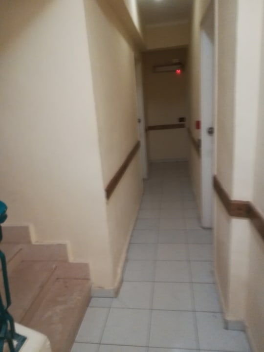 Sehr enge Zimmerflure oftmals mit schmutzigen Geschirr abgestellt