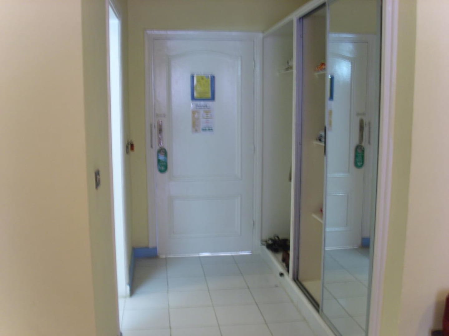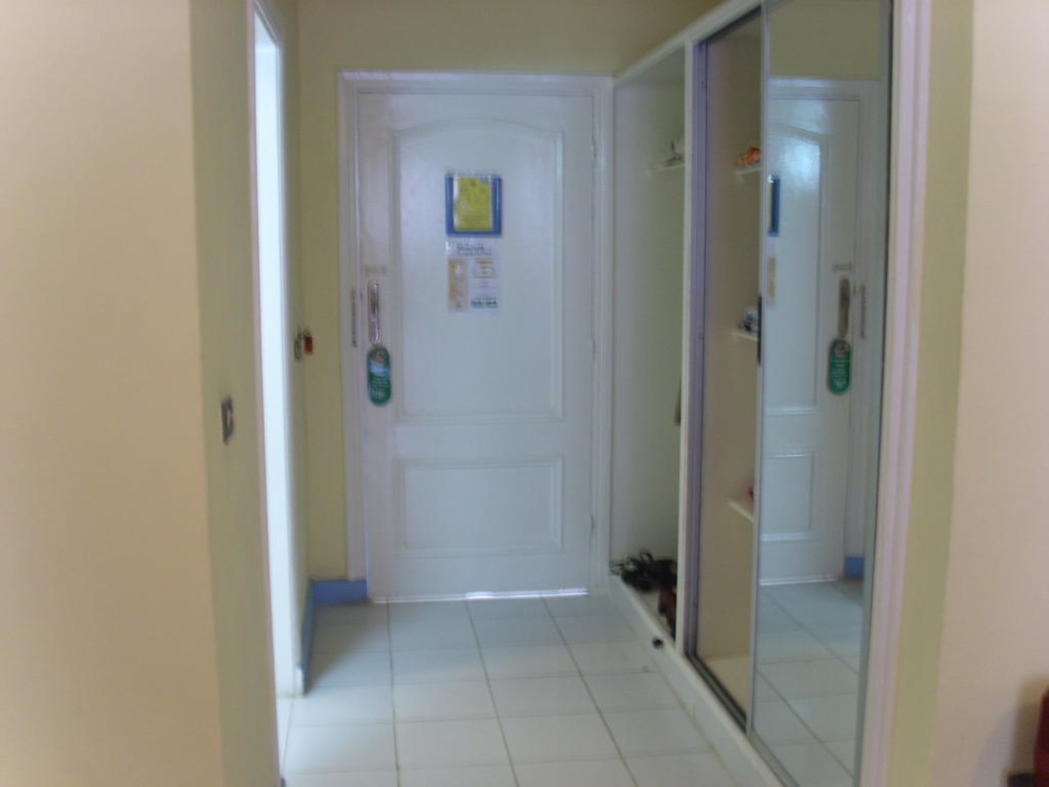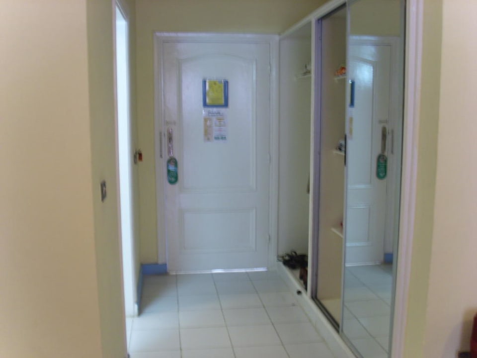 Rechts der große Schrank, links das Badezimmer