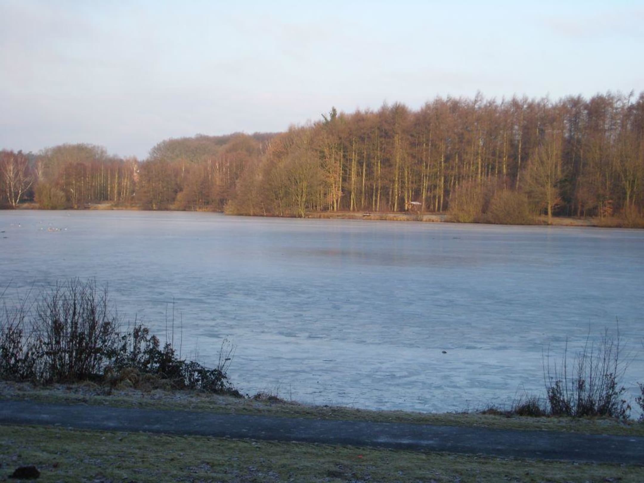 Blick vom Restaurant auf den zugrefrorenen See