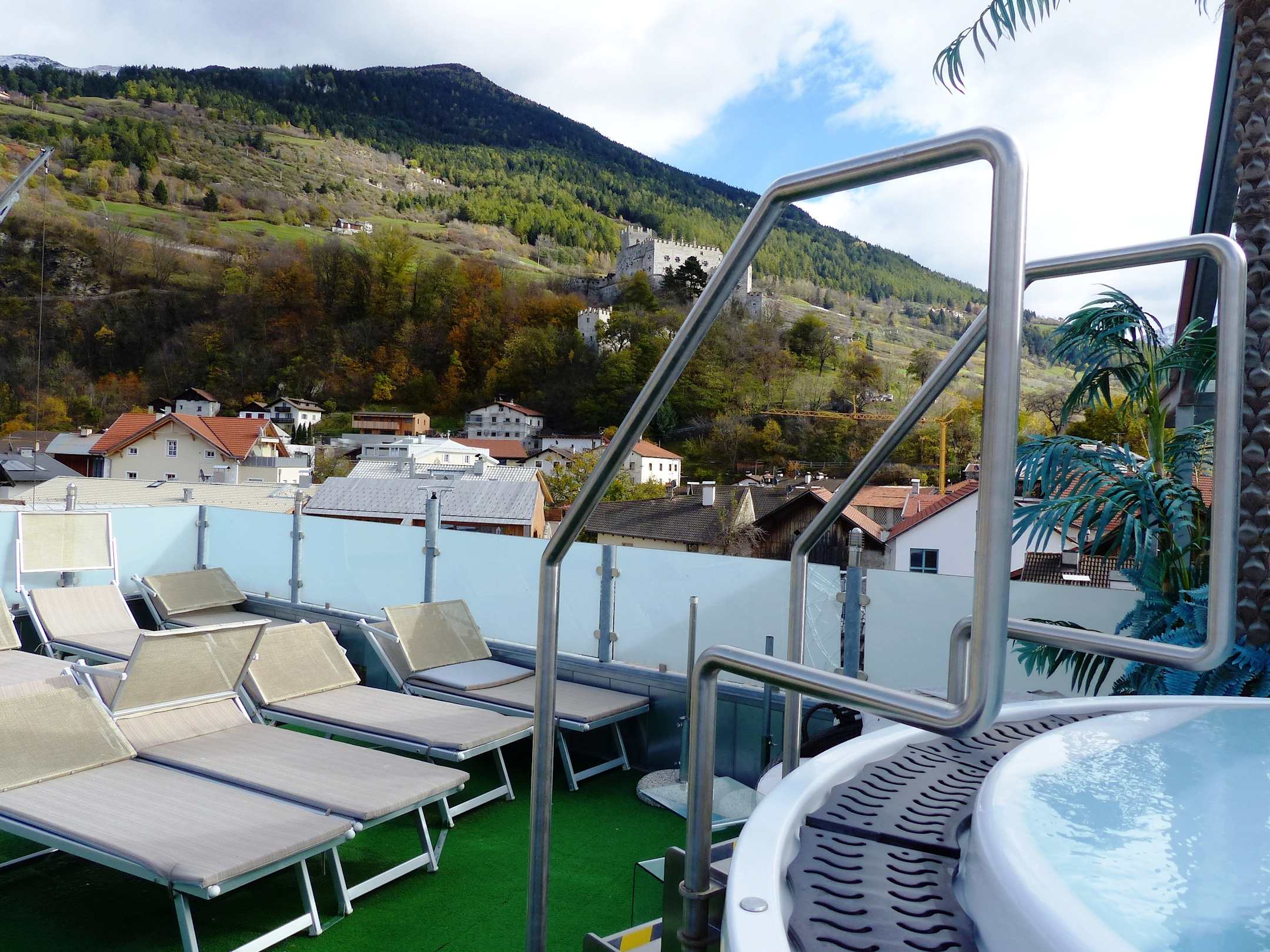 Whirlpool aussen mit Blick zur Churburg