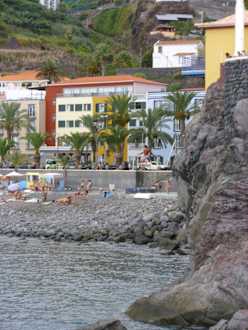 Blick über dem Strand zum Hotel