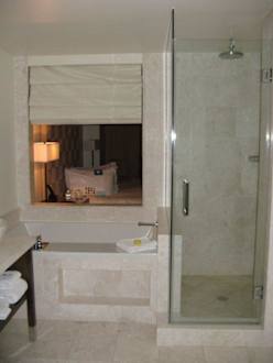 Epic Hotel in MiamiEpic Hotel in Miami: Badezimmer mit "Fenster" zum Schlafzimmer (kann man mir einem Rollo verschließen)