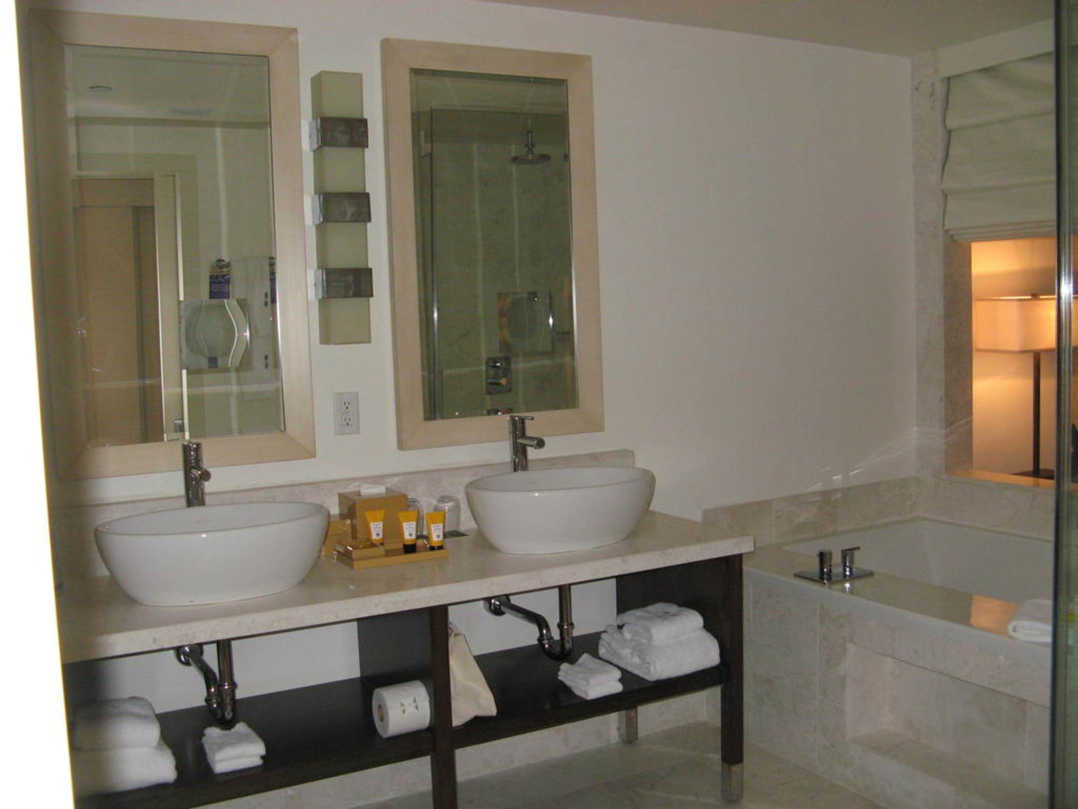 Epic Hotel in MiamiEpic Hotel in Miami: Badezimmer mit "Fenster" (verschließbar mit Rollo) zum Schlafzimmer