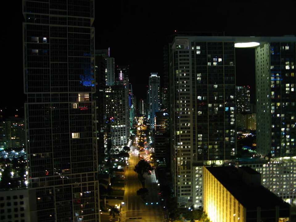 Epic Hotel in Miami: Blick vom Balkon auf das nächtliche Downtown