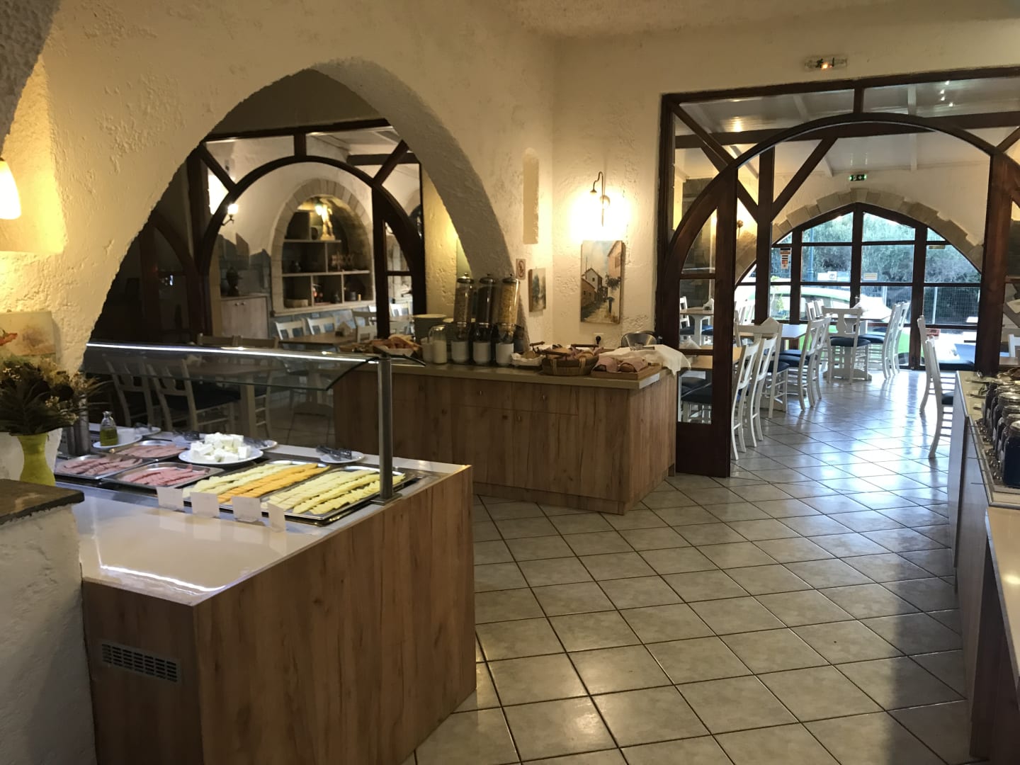 GastroFrühstück und Abendessenbuffet und Essbereich. Zum Frühstück kann auch auf der Terrasse Platz genommen werden😊