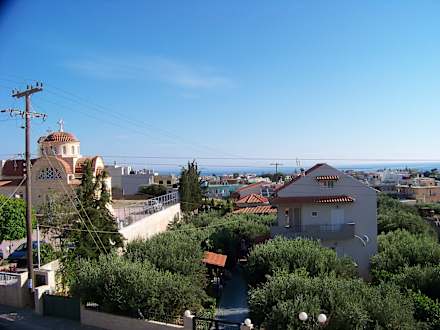 Das ist der Ausblick von der Dachterrase über den Ort Gournes zum Meer hin.