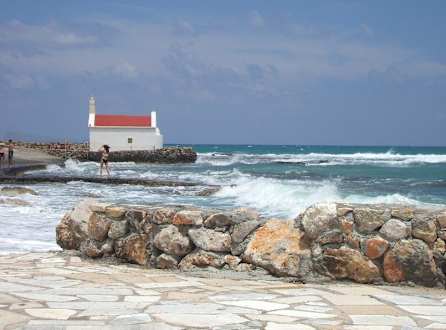 Widok na plażę przy hotelu i kapliczkę w tle