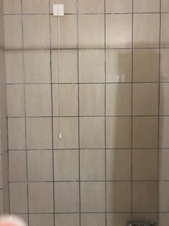 Schwarzschimmel in den Fugen im Badezimmer.