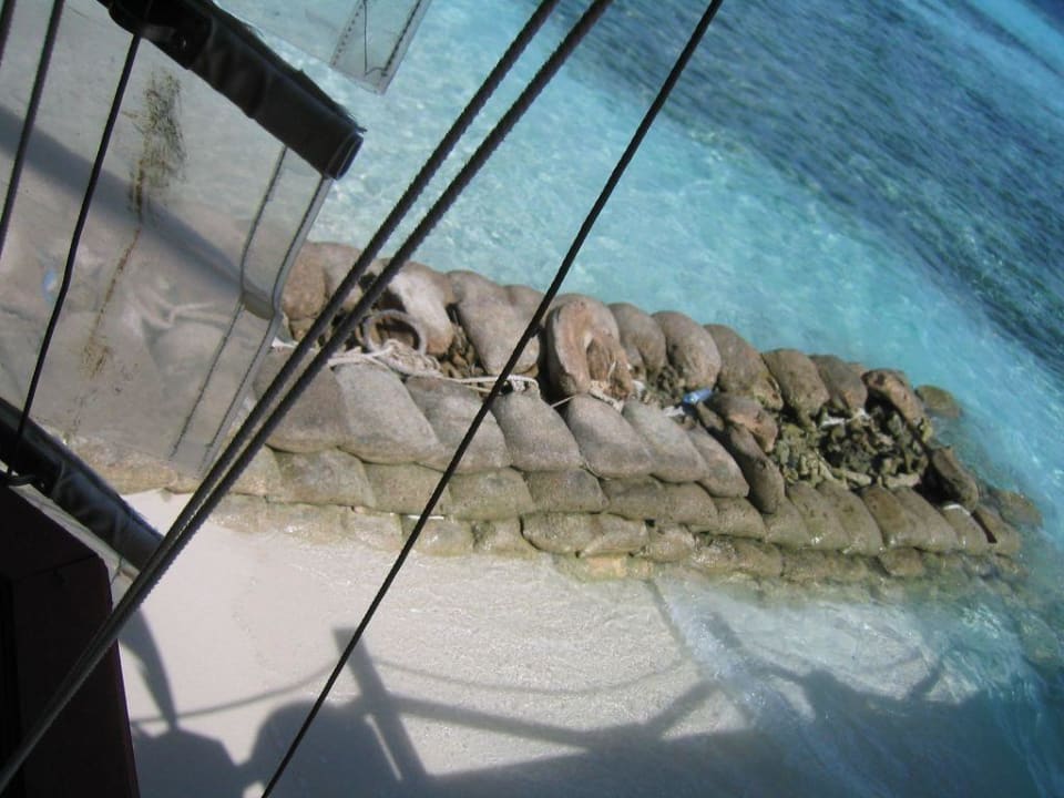 Sandsäcke und eingerissene Rollos