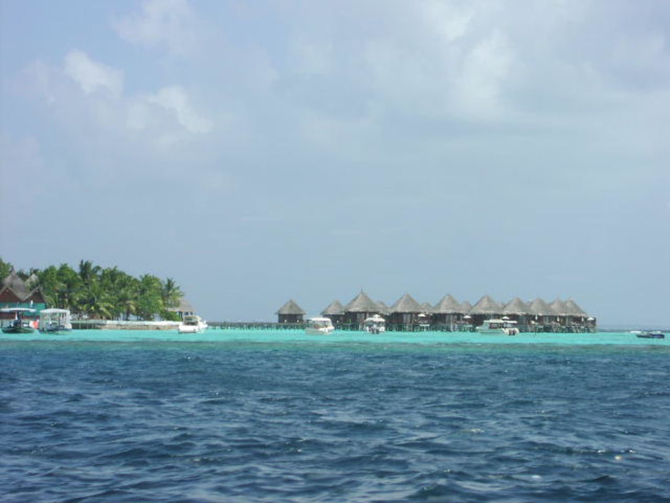 Insel auf den Weg zur Insel EriyaduMan fährt vom Flughafen direkt mit dem Schnellboot daran vorbei.