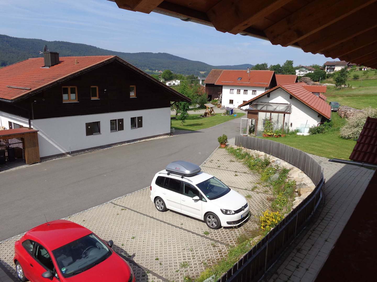Der Blick aus dem SpielhausViel Platz zum Parken. Sehr weitläufiges Gelände