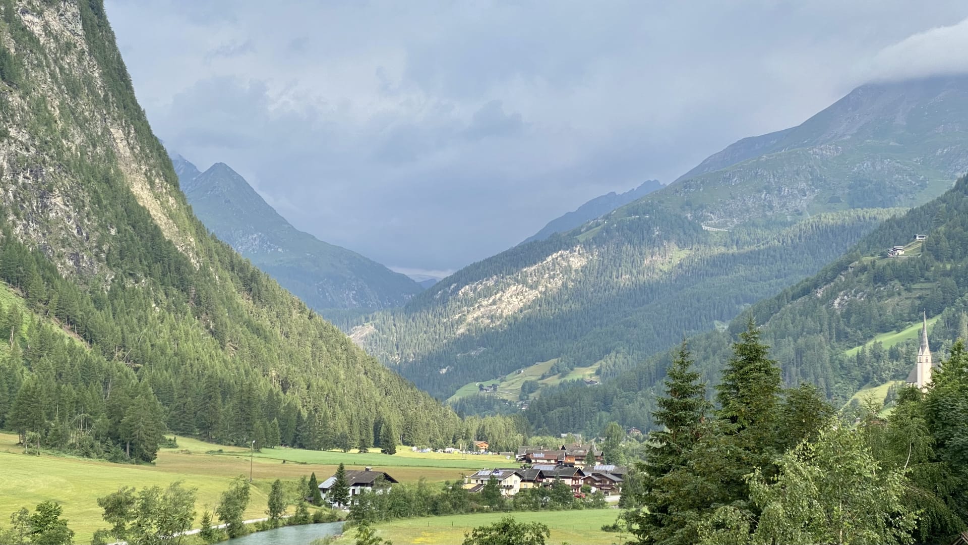 Blick aus einem der Schlafzimmer auf Heiligenblut. Der Großglockner ist hier in den Wolken.