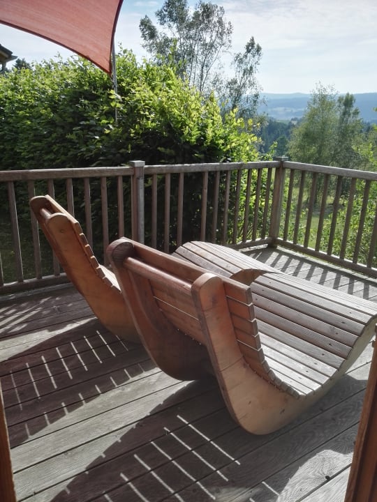 Balkon mit Holzliegen