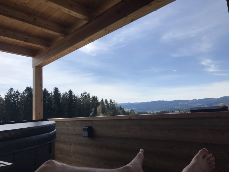 AusblickEntspannen auf der überdachten Terrasse des Wellness Bereichs des SPAcherls. Ein malerischer Ausblick in die Landschaft...