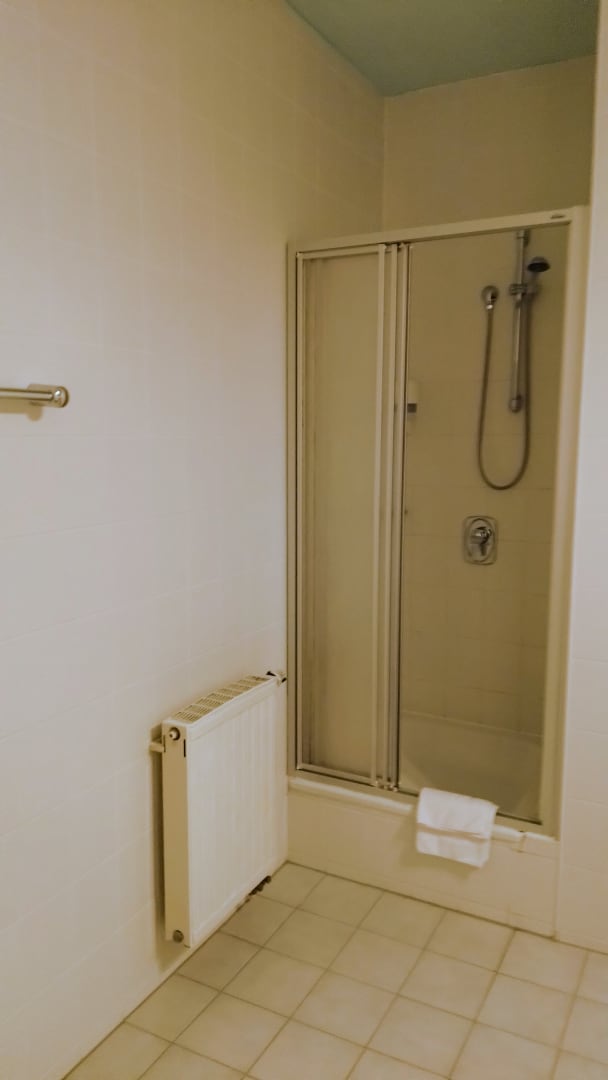 Die Duschkabine im Zimmer 212.
