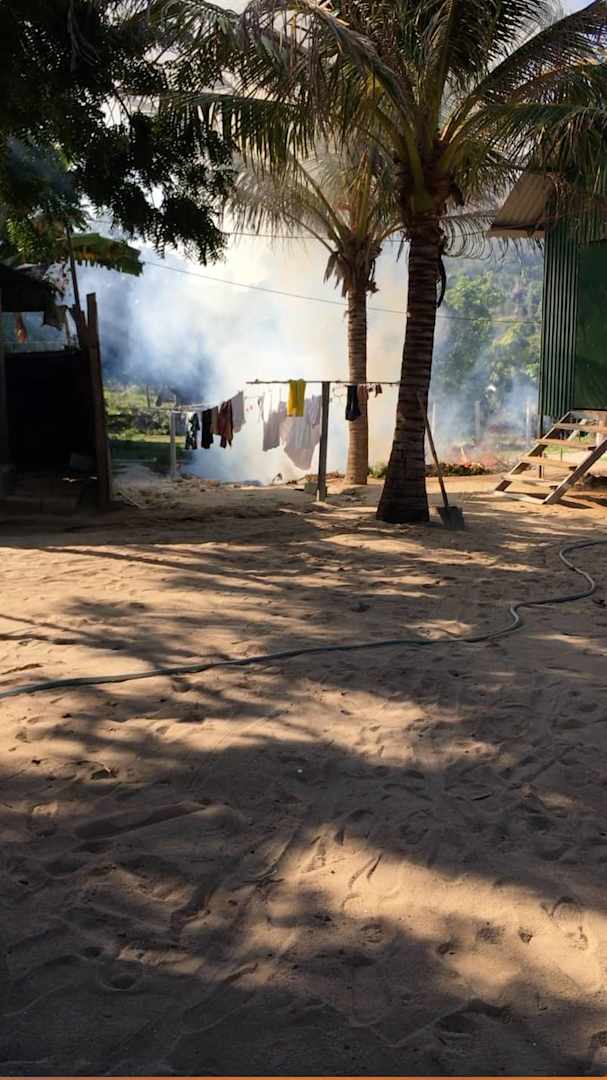 offener Brand mitten auf dem Gelände, Gott weis was die da verbrannt haben... riesige Rauchschwaden die sich überall verteilt haben und auch die Zimmer eingeräuchert haben.