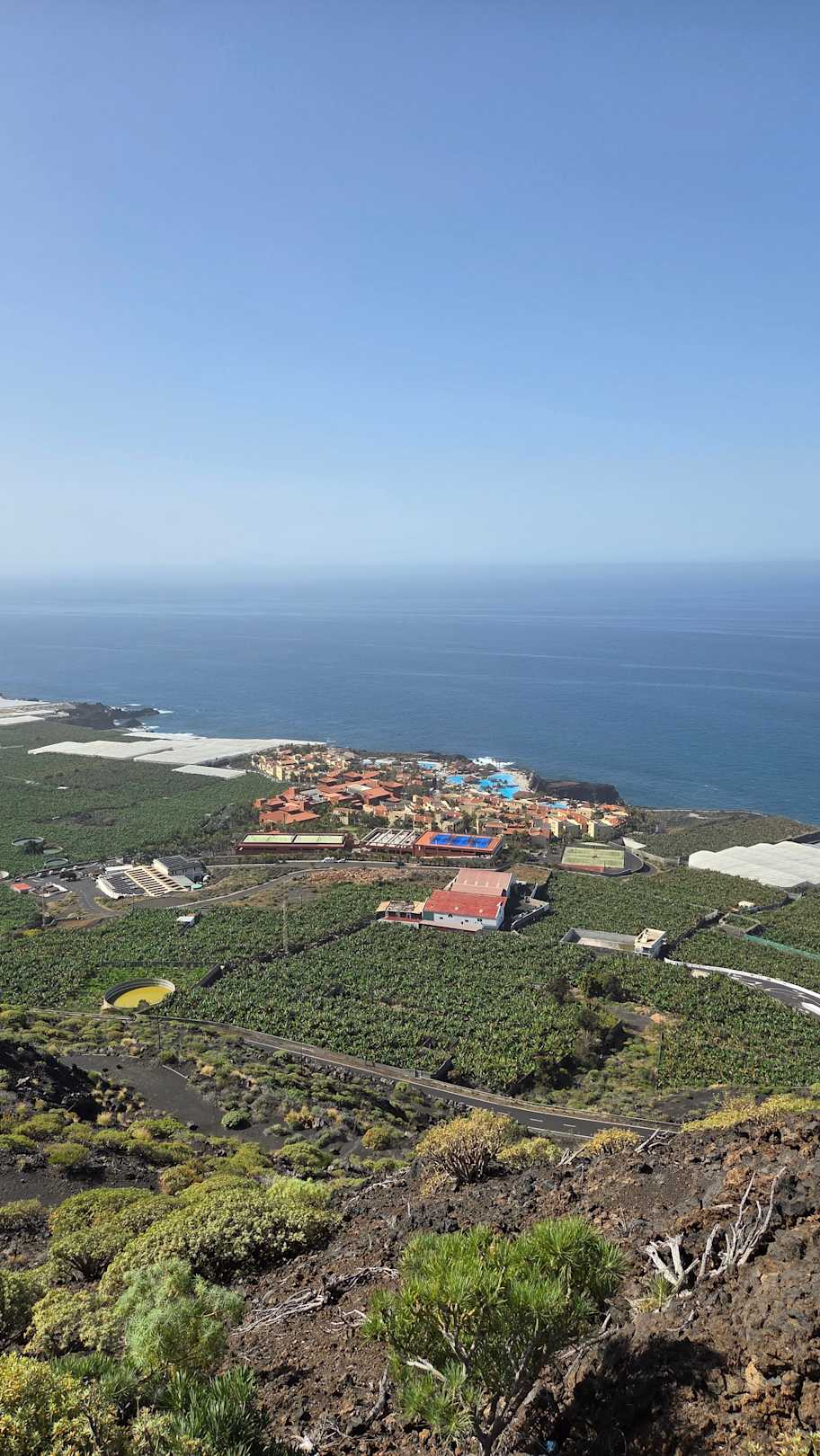 Blick vom Berg auf das Hotel