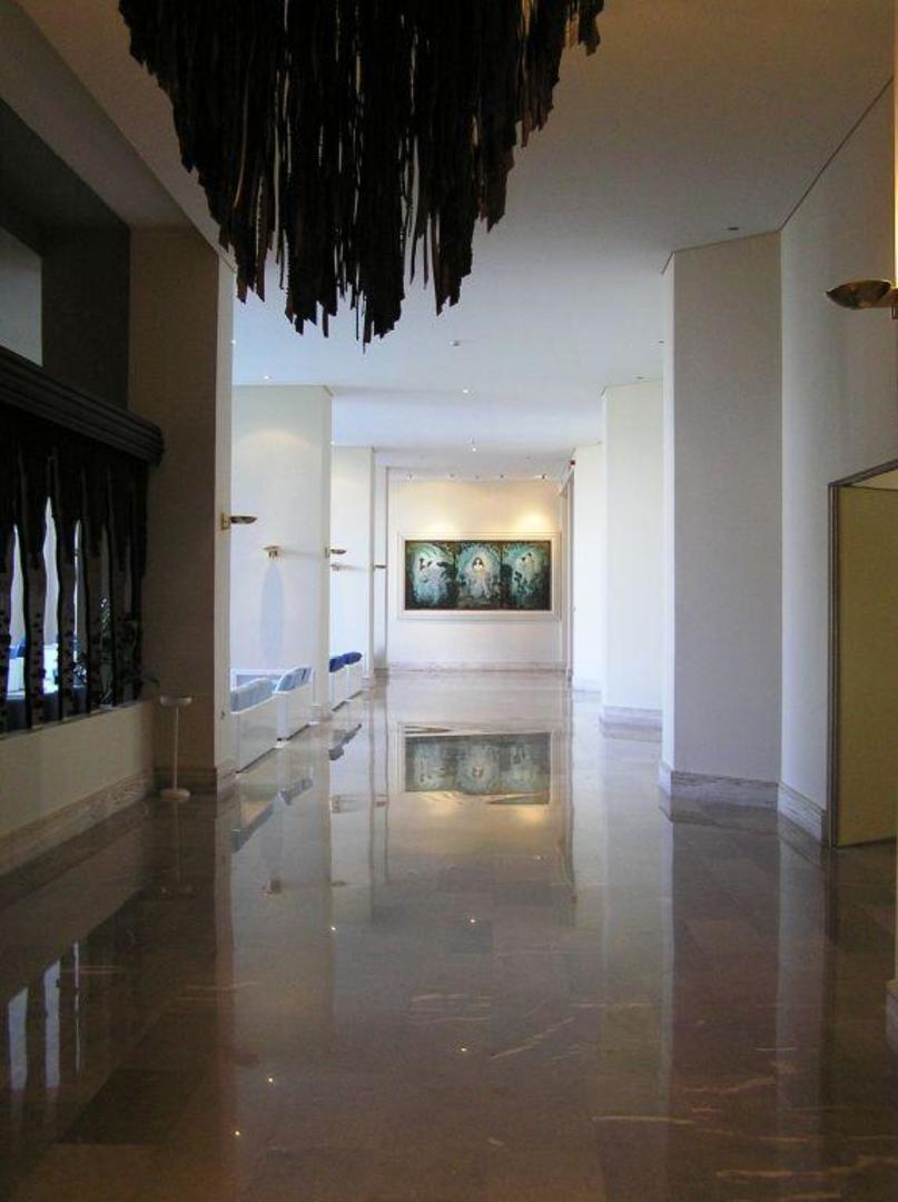 Geradeaus geht es zu den Zimmern im rechten Flügel des Gebäudes. Rechts sind zwei große Räume. Einer ist der Fernsehraum oder auch Kinoraum, der Zweite Raum wird für die Begrüßungen der einzelnen Reiseveranstalter genutzt.