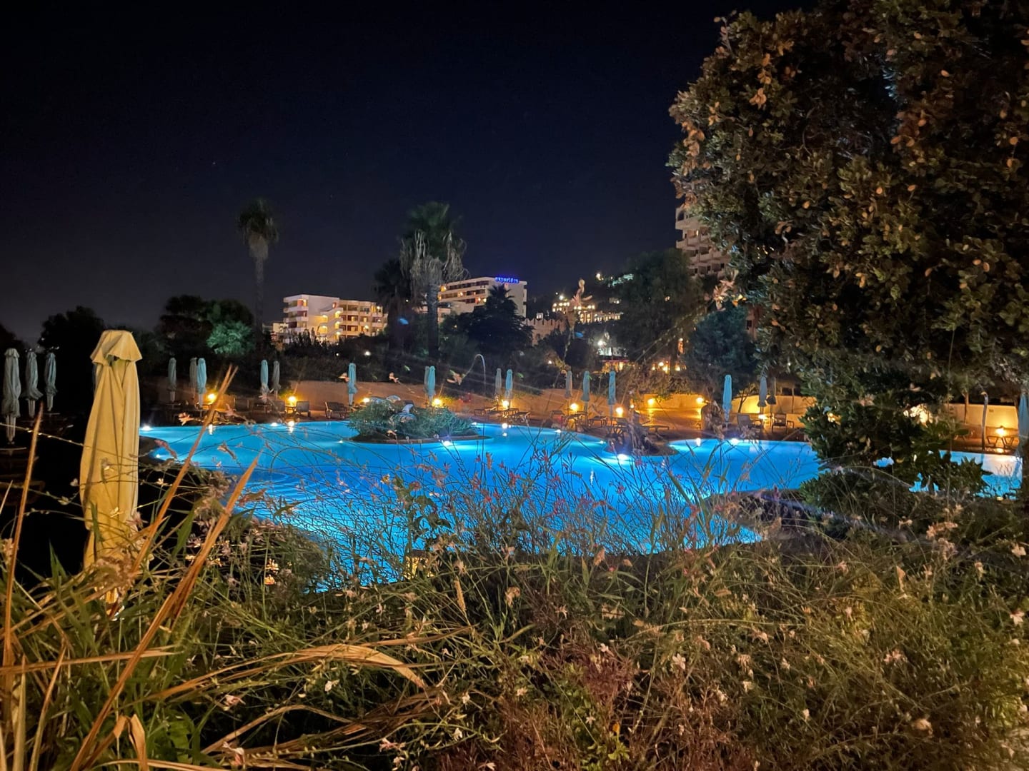 Pool Abends vom Restaurant aus