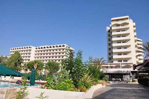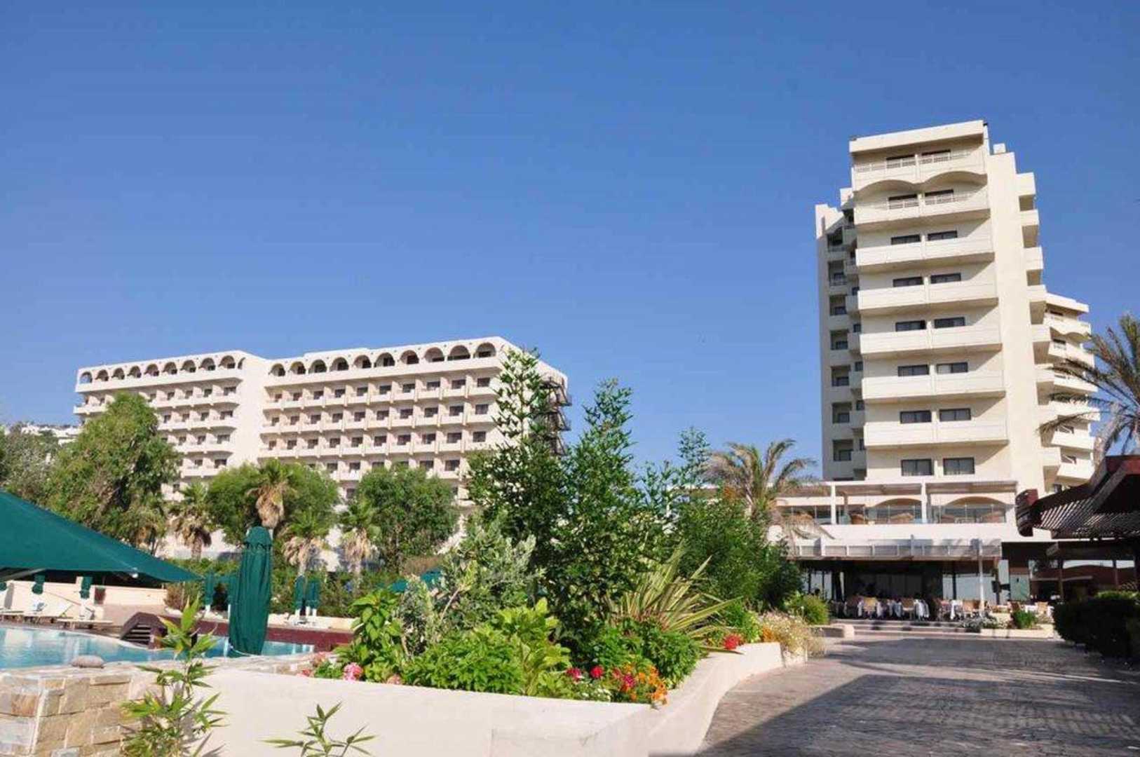 Die zwei Gebaüde des Esperso Hotel. Bild von Strand aus genommen