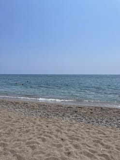 Kiesstrand, geht aber auch ohne Badeschuhe