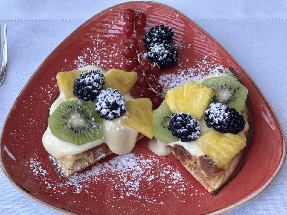 Frische Waffel zum Frühstück mit Mascarpone und frischen Früchten - köstlich