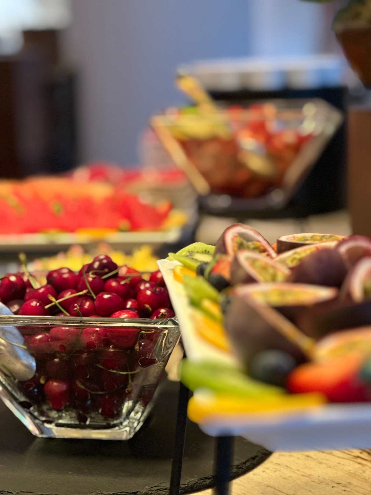 GastroDas Nachspeisenbuffet bietet sowohl frisches Obst als köstliche Torten, Crème Brûlée, Profiteroles, Meringue… und vieles mehr