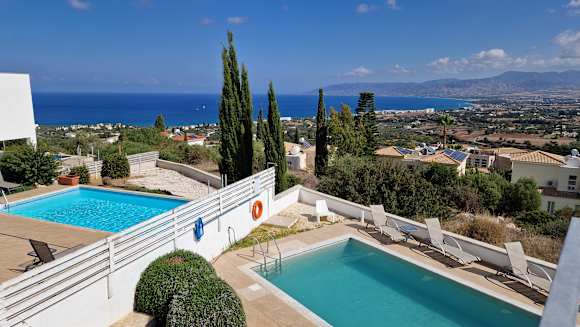 Ausblick auf die Pools von Villa 20 & 21 von der Dachterrasse aus