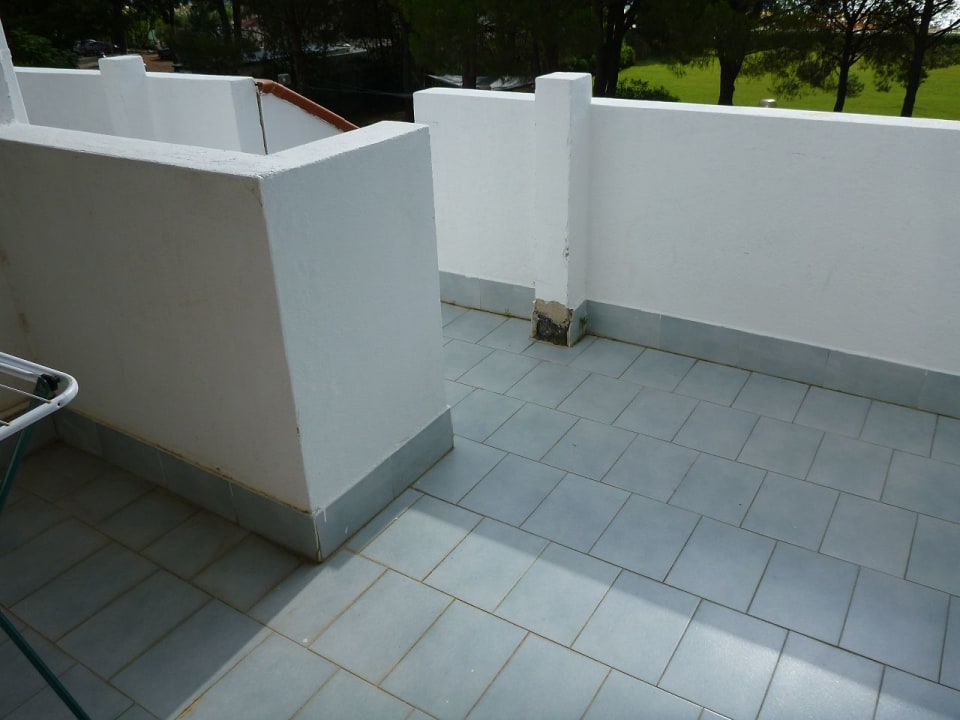 Putzschäden, manchmal mit Farbe ausgebessert.
