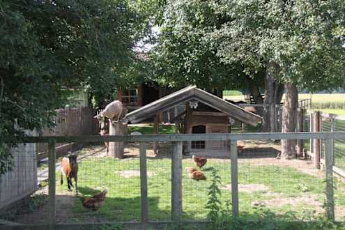 Ziegen und Hühnerstall