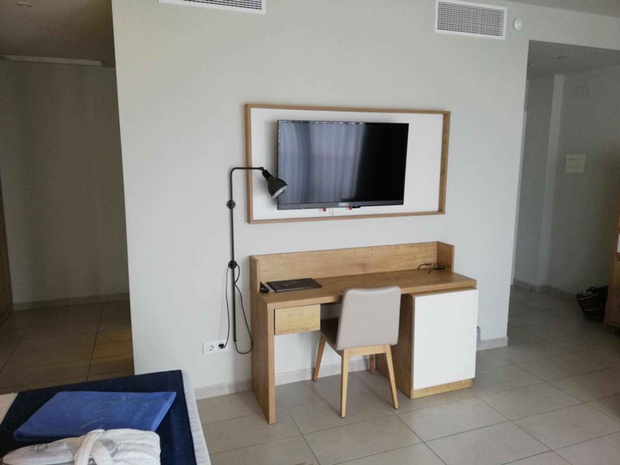 Schreibtisch und Flachbildfernseher
