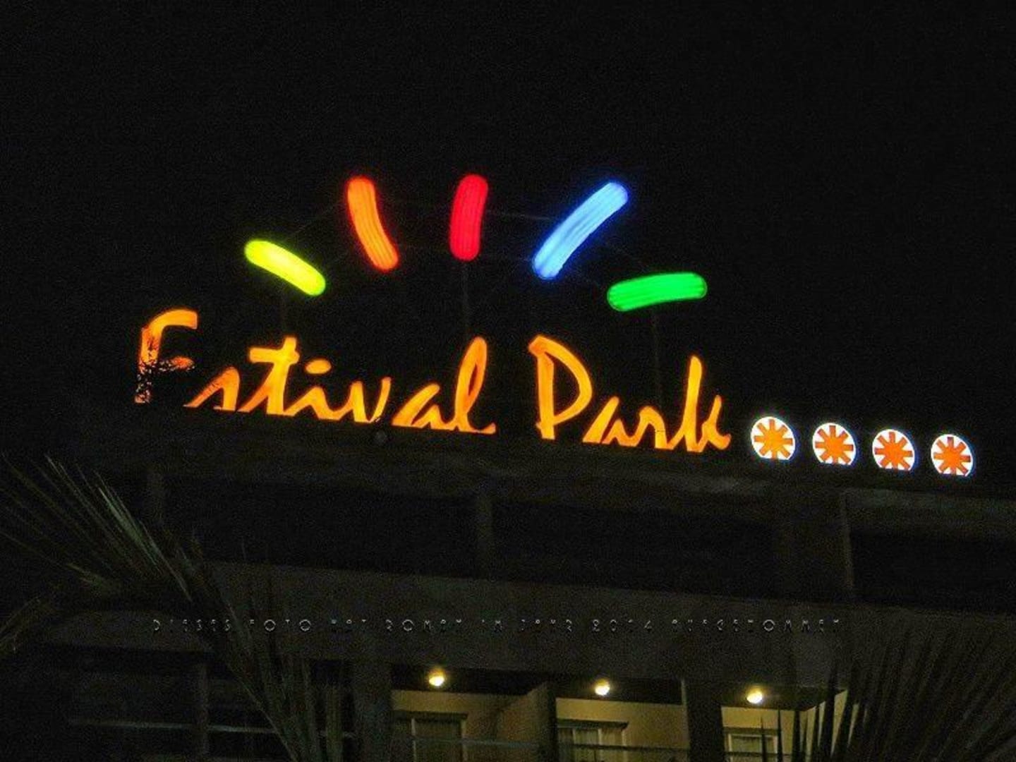 Leuchtreklame "Estival Park" über Haus
