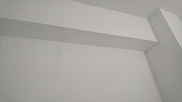 In unserem Zimmer waren überall Risse in den Wänden.