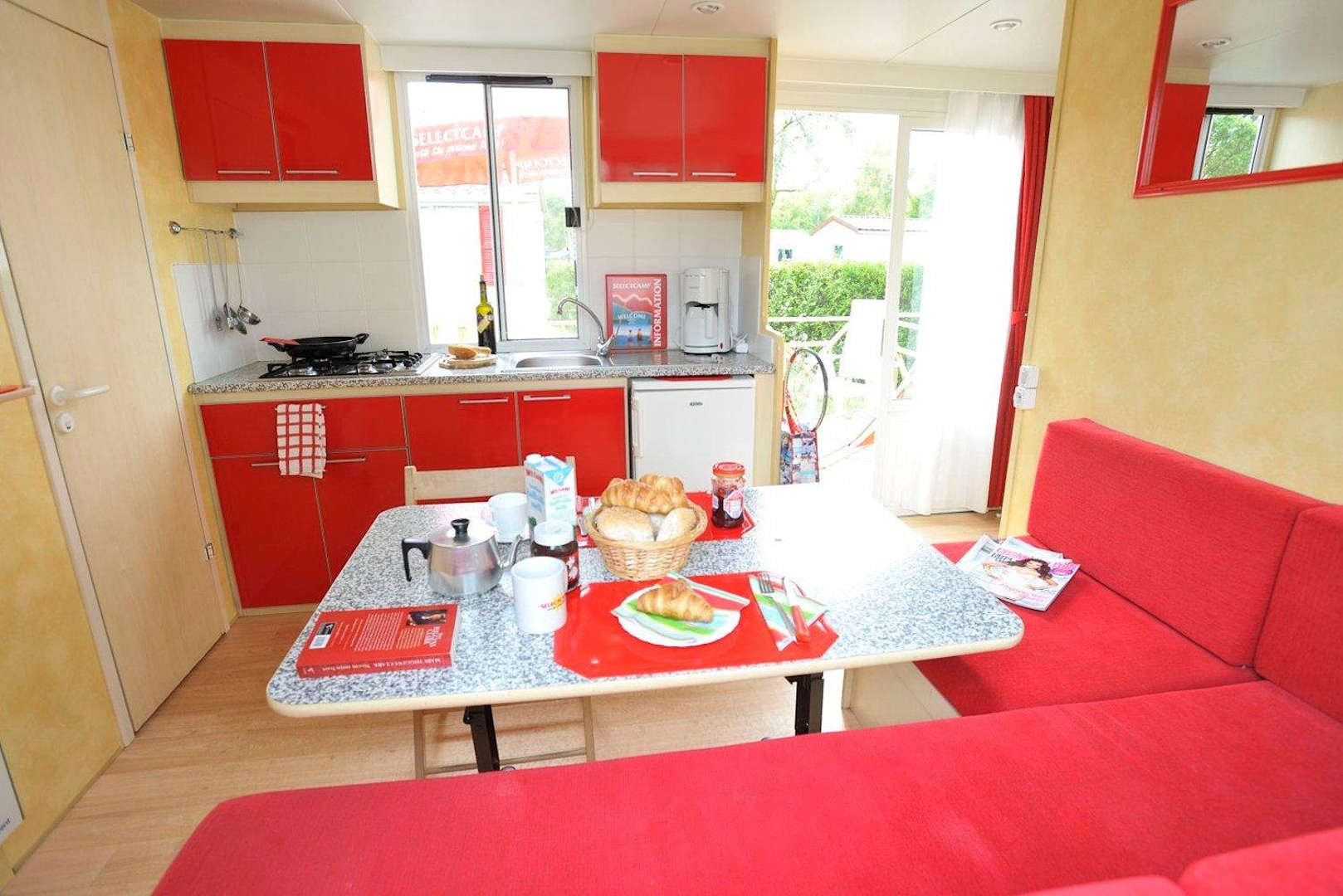 Selectcamp Mobilheim Wohnbereich und kpl. Küche