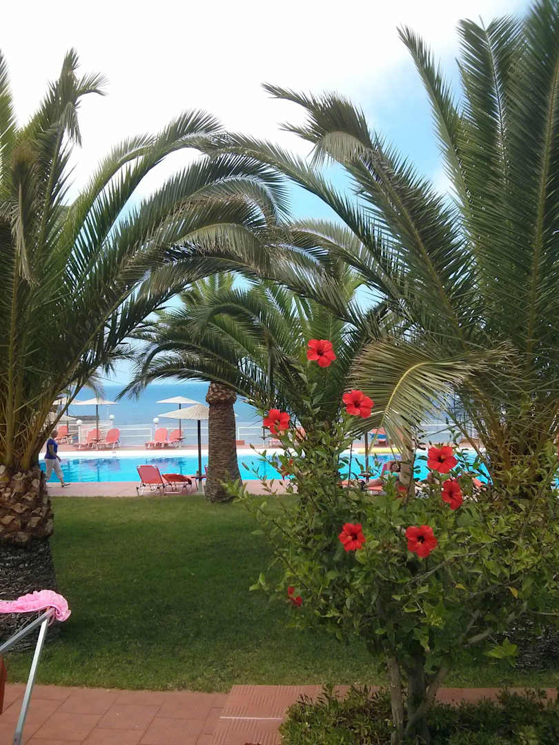 Blick von der Terrassentür Richtung Pool