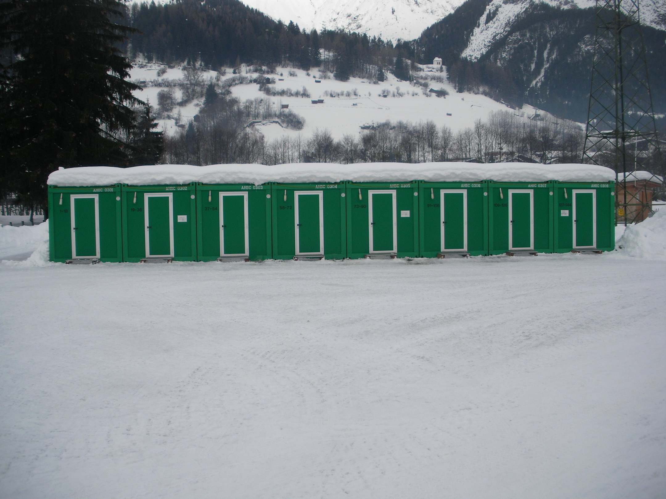 Container mit Schränken für Ski und Schuhe