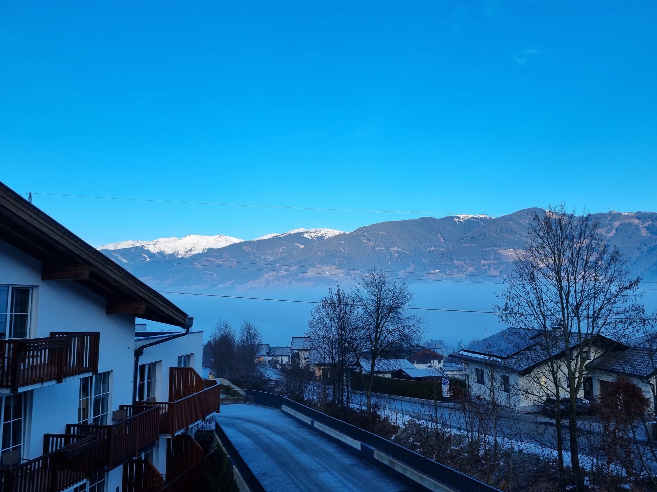 Ausblick vom Balkon Richtung Schmittenhöhe in der Früh