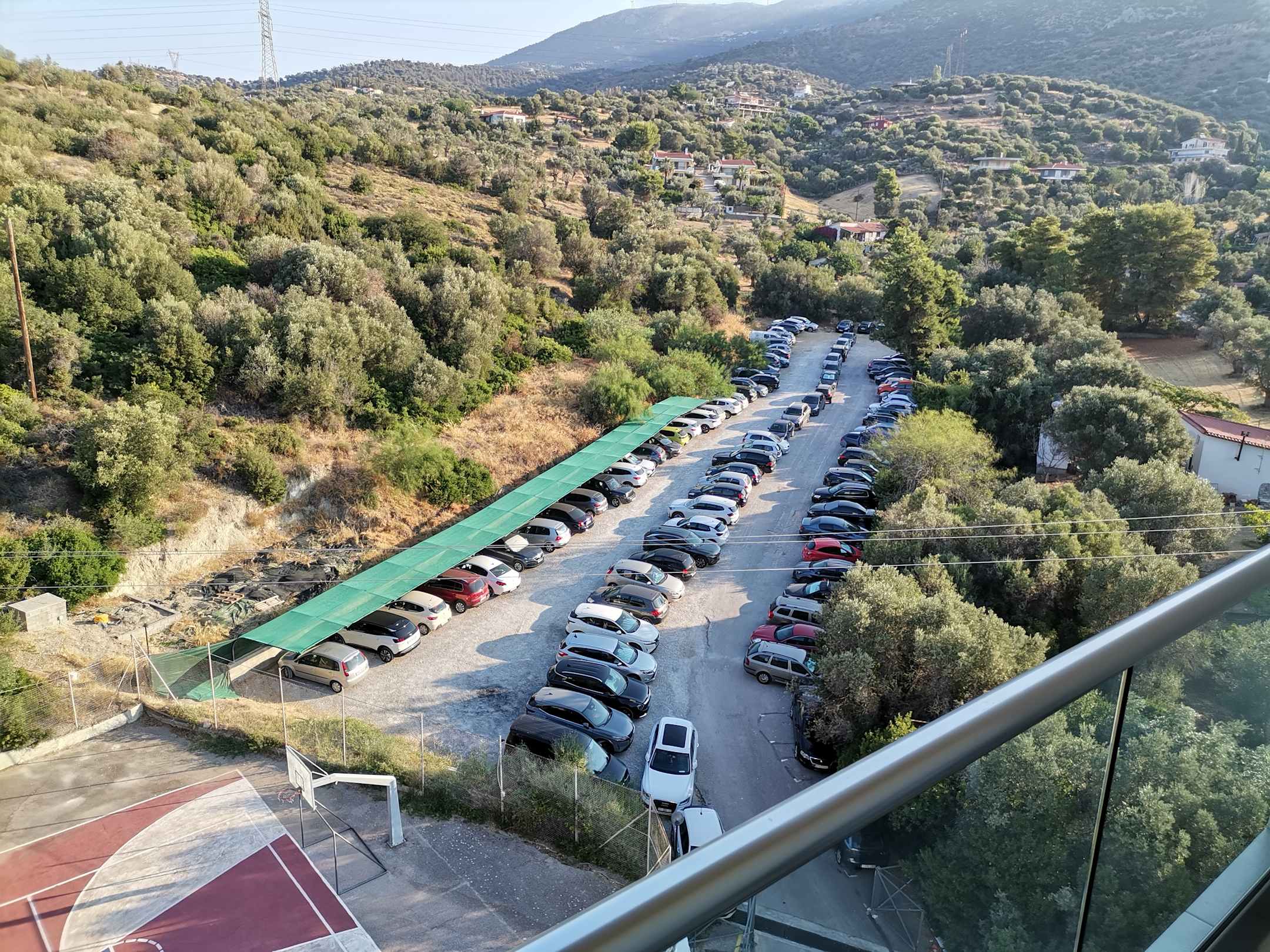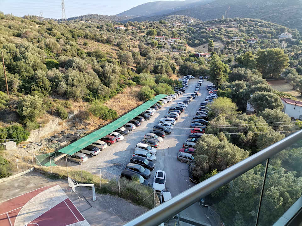 AusblickParkplatz geht nicht voller weil die meisten Gästen mit Ihre eigene Autos angereist würden. Überwiegend Osteuropäische Gäste, und Grieche