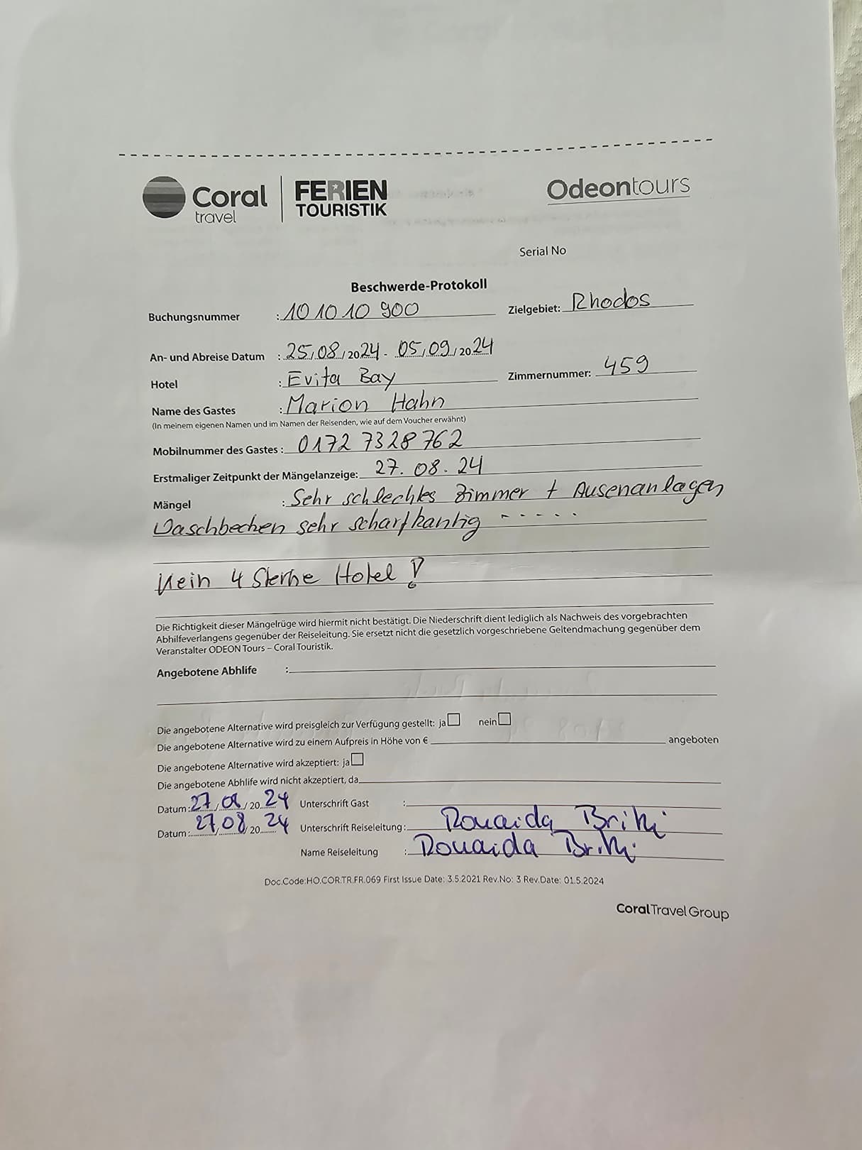 Beschwerdebrief an Reiseleiter