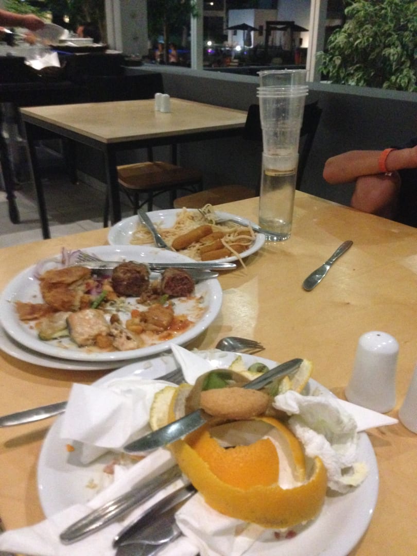 Überall volle Tische mit Geschirr