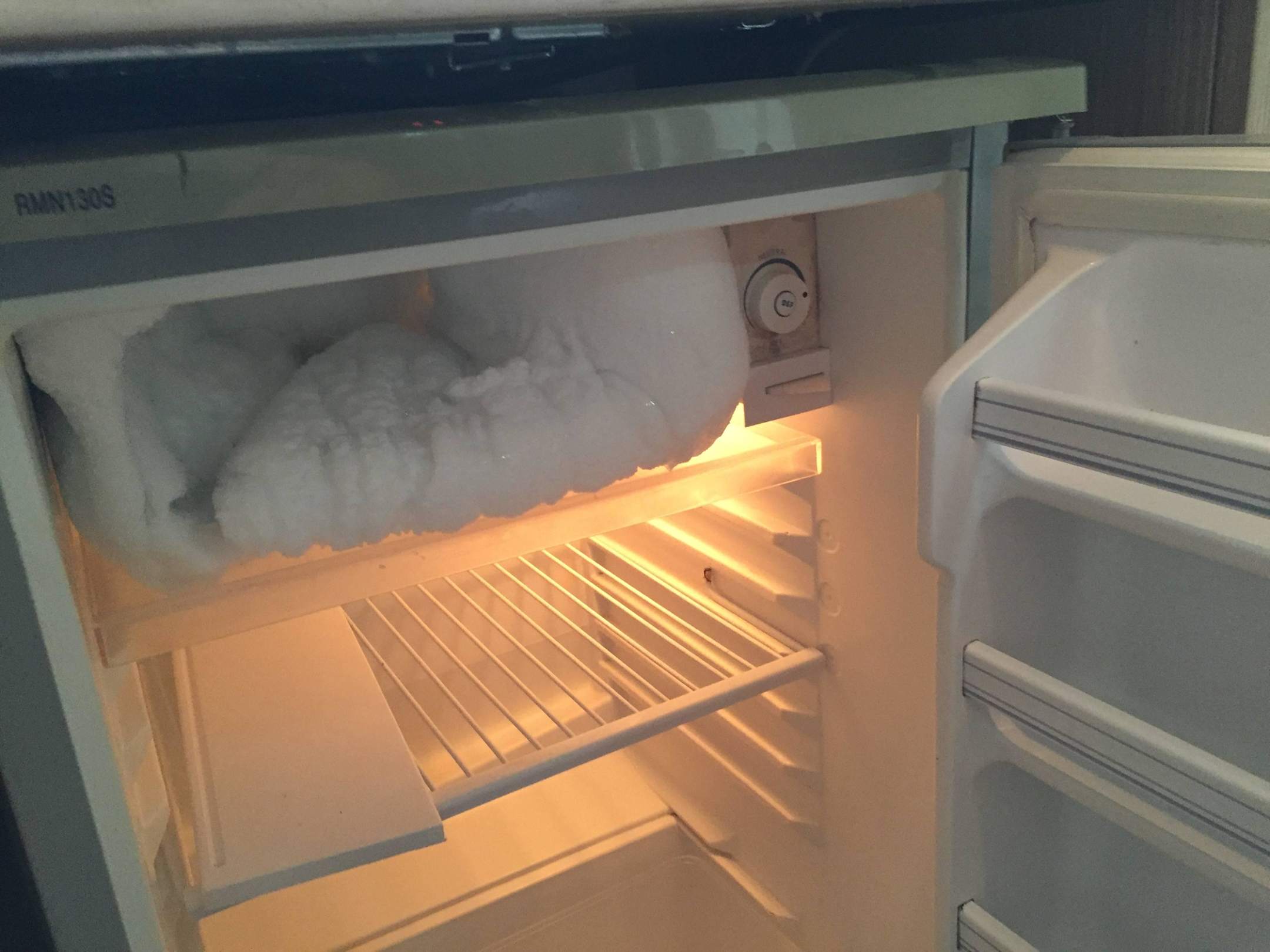 Unterkunft am Strand: vereister Kühlschrank