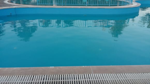 Der Pool wird gereinigt und gechlort siehe weiße Spur am Rand