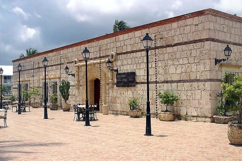 Dies ist die Außenansicht des dominikanischen und mexikanischen Restaurants.