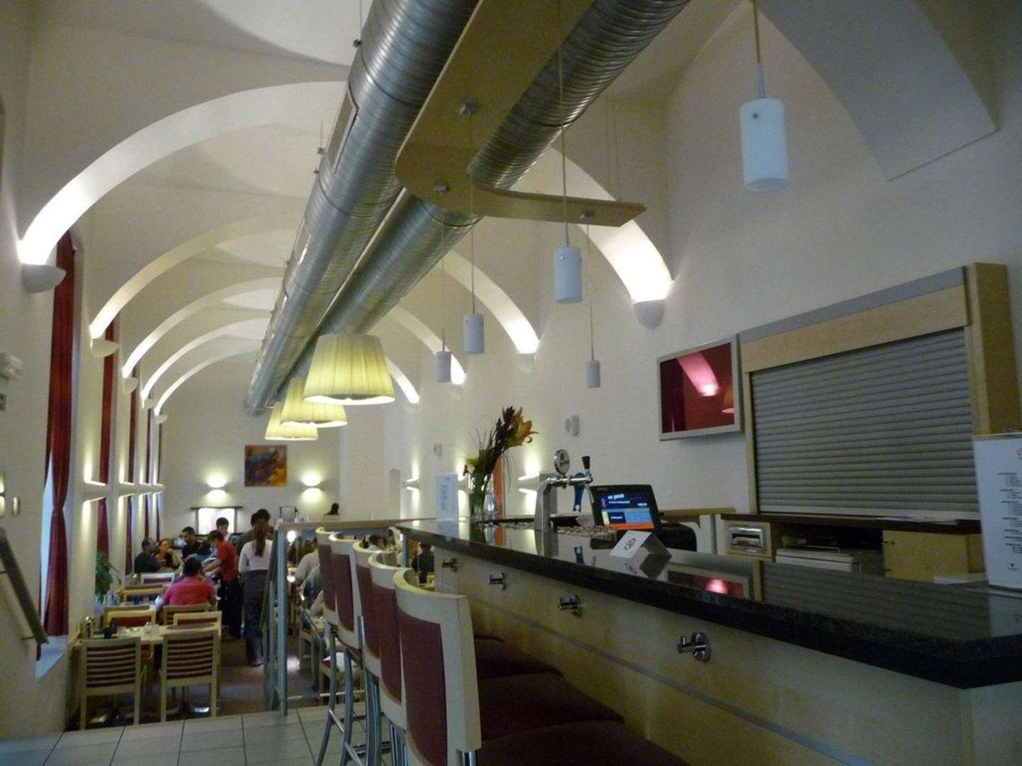 Frühstücksrestaurant, rechts Bar