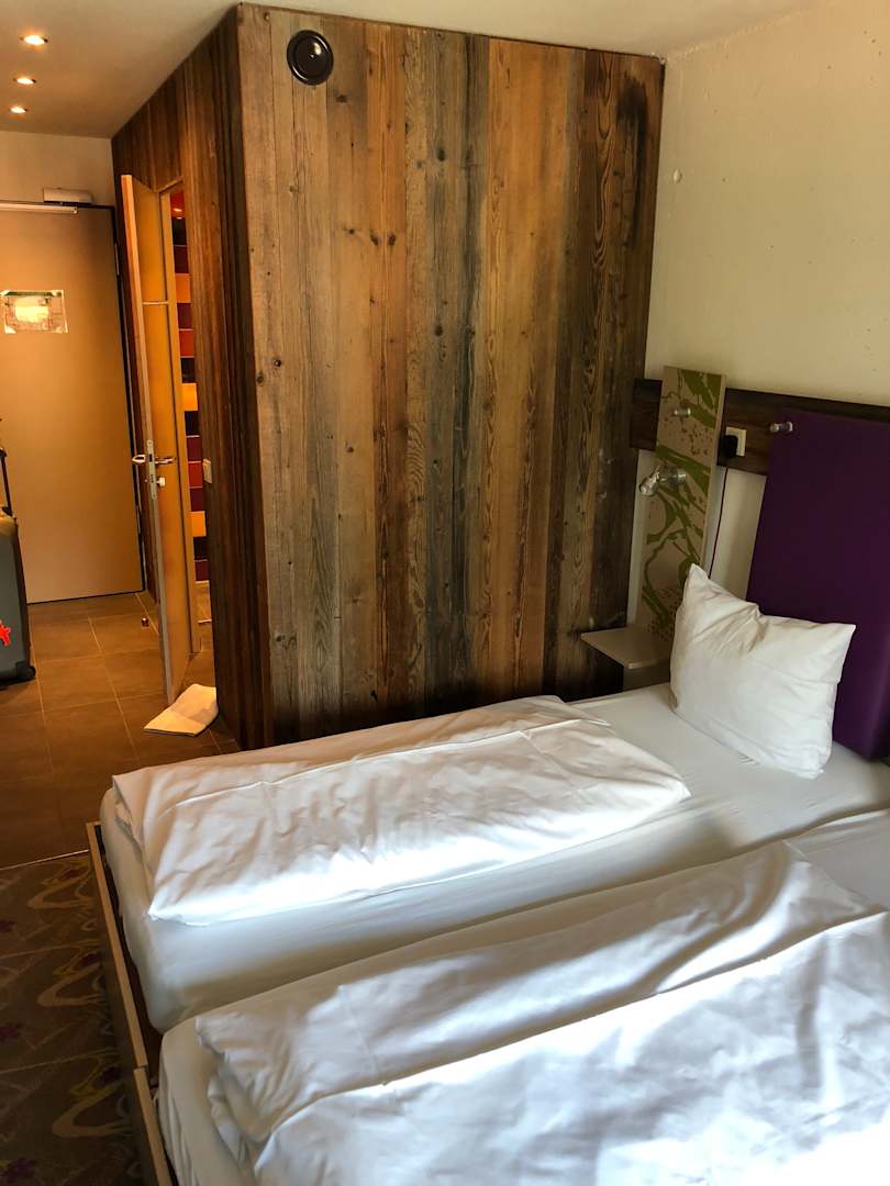Etwas eng, aber alles, genügend offene Ablageflache für Sportutensilien und auch Haken, dafür kein Kleiderschrank mit Türen. Alles offen. Und ein Safe! Bett bequem, alles sauber. Trotz Straße relativ ruhig. Könnten super schlafen.