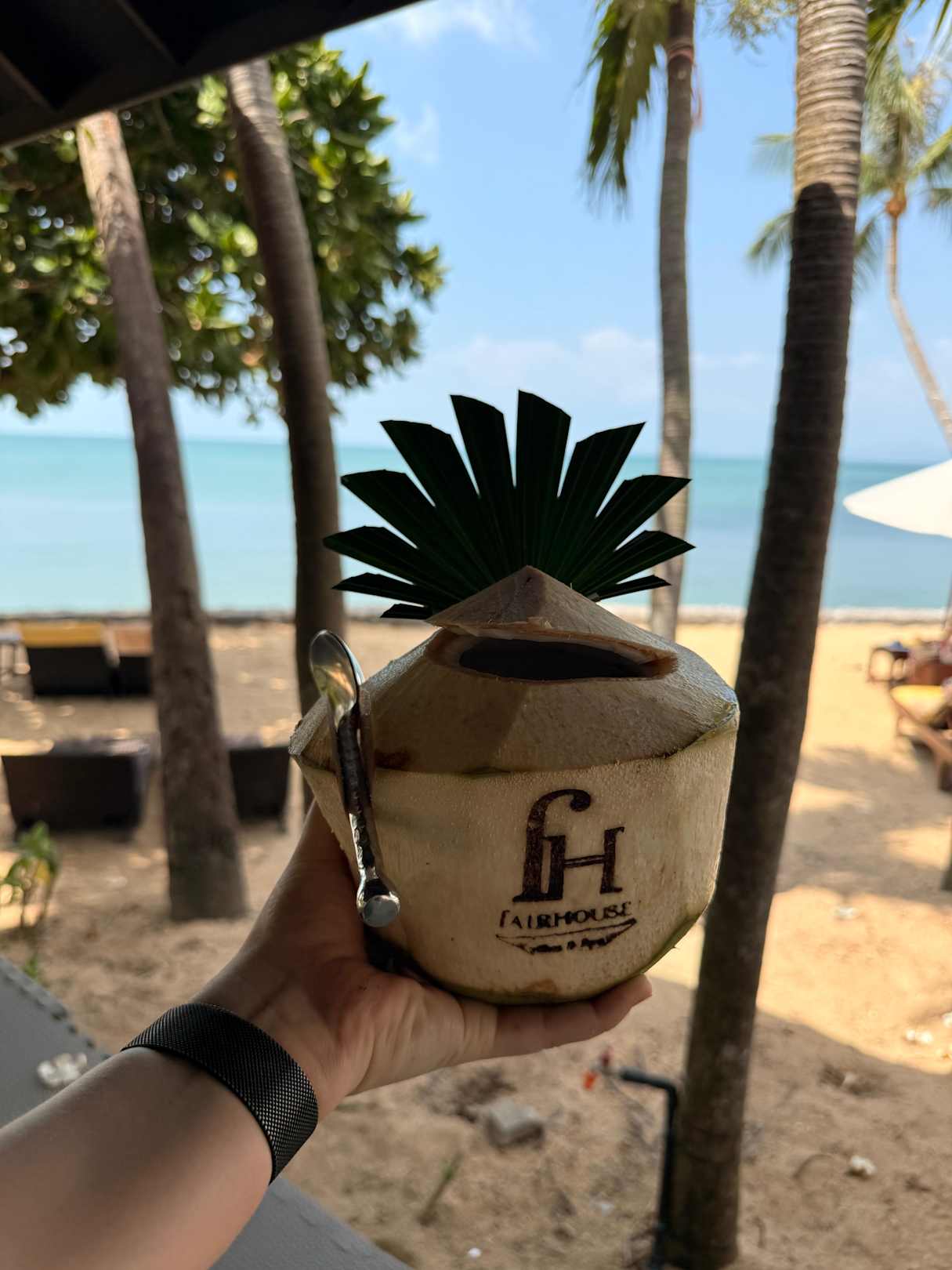 Frische Kokosnuss am Pool/Strandbereich.
