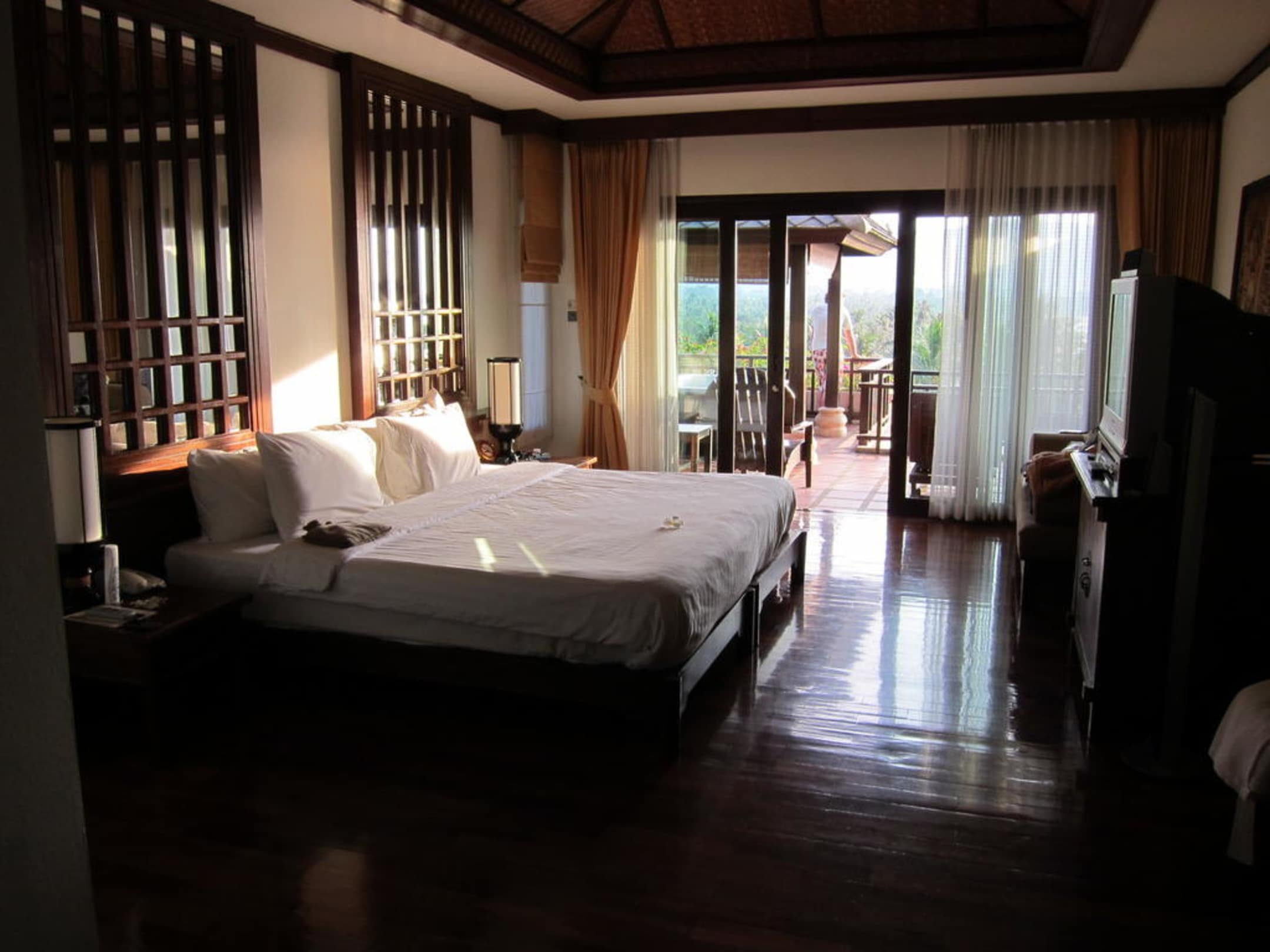 Zimmer mit Blick auf Terrasse und Bett