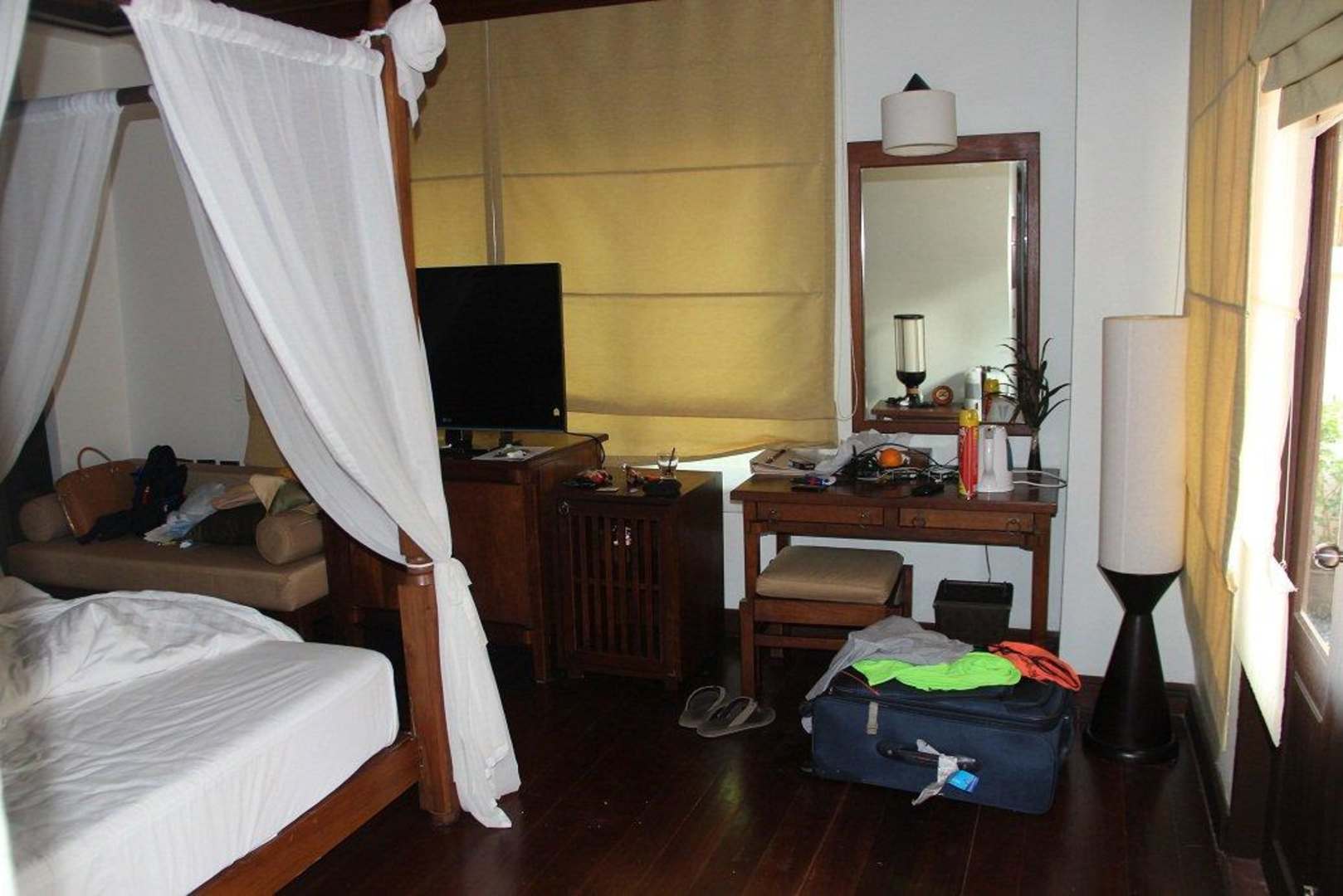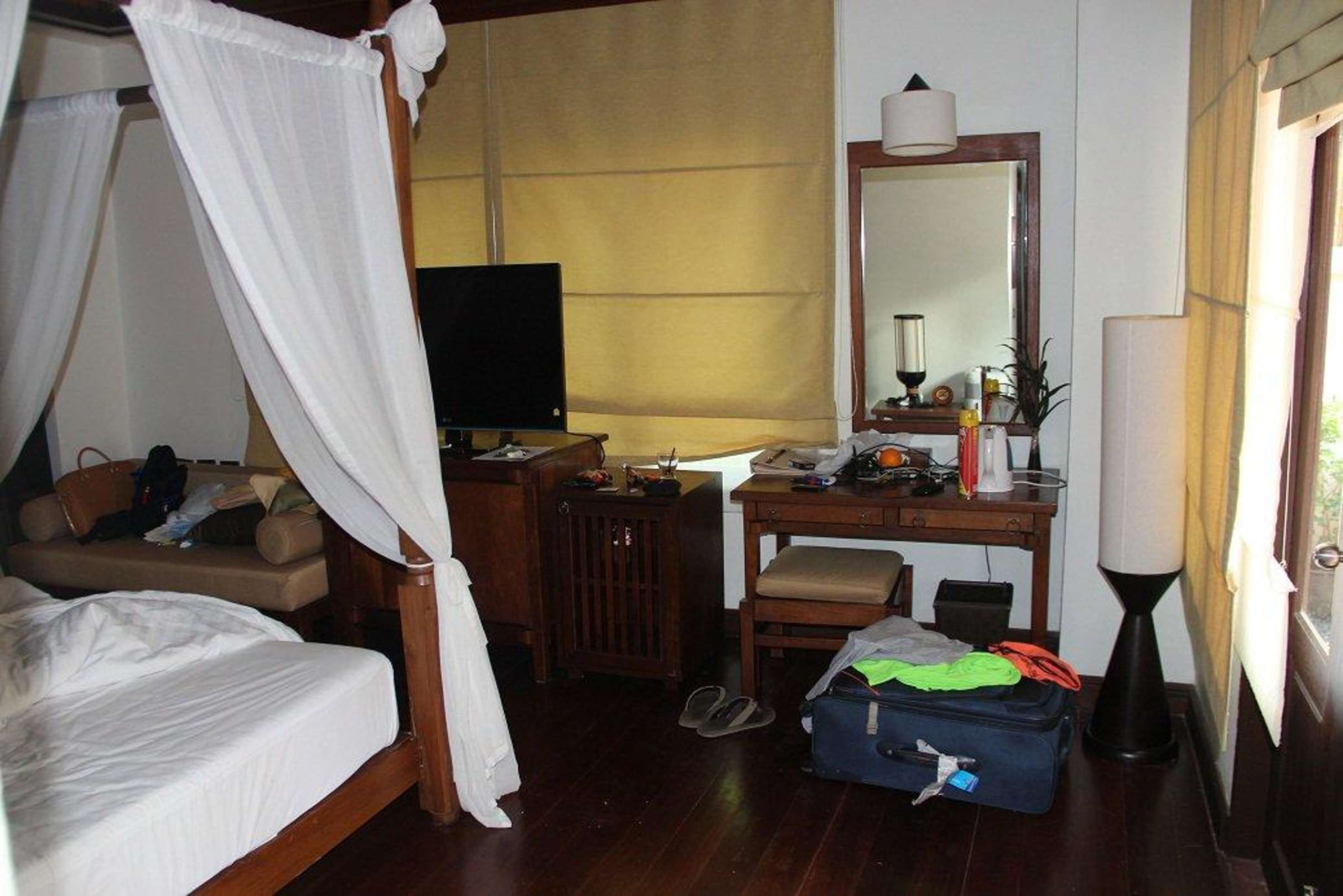 Poolvilla 301, Bett, Schmicktisch und TV