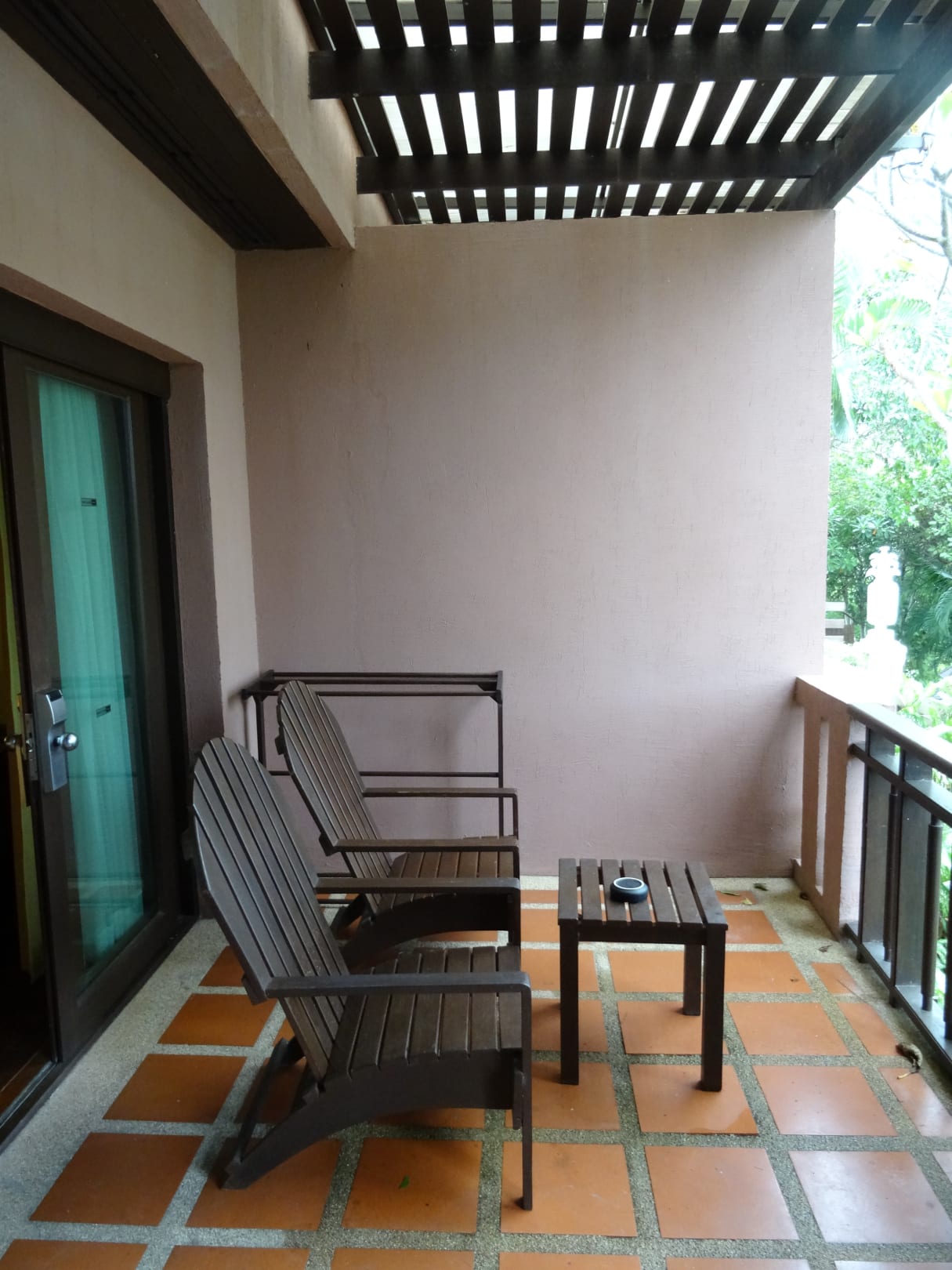"Balkon Delux im 1. Stock" Der 1. Stock war 2 Stufen zum Weg getrennt. Trotz Nachfrage konnte man uns nicht behilflich sein. Bei Regen war das Dach undicht und alles nass.